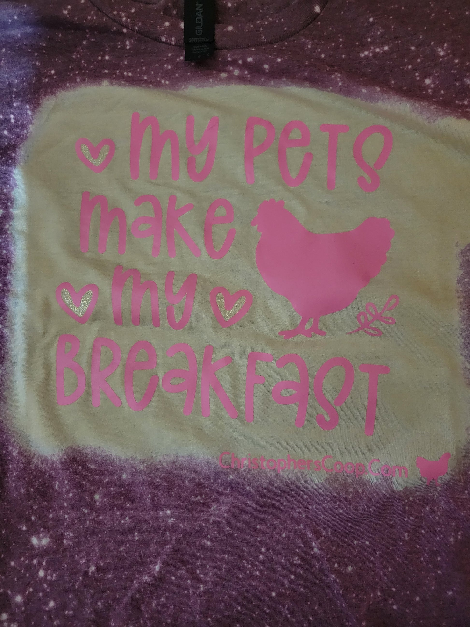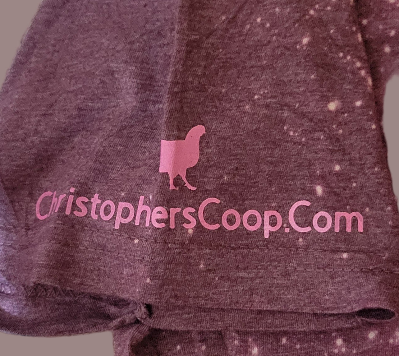 Cotton-Poly blend. Graphics on the front, back and right sleeve. Comes stock with "ChristophersCoop.Com", but can be customized with your farm or homestead name, Email CHRISTOPHERSCOOP@YAHOO.COM for customization after you complete your purchase.