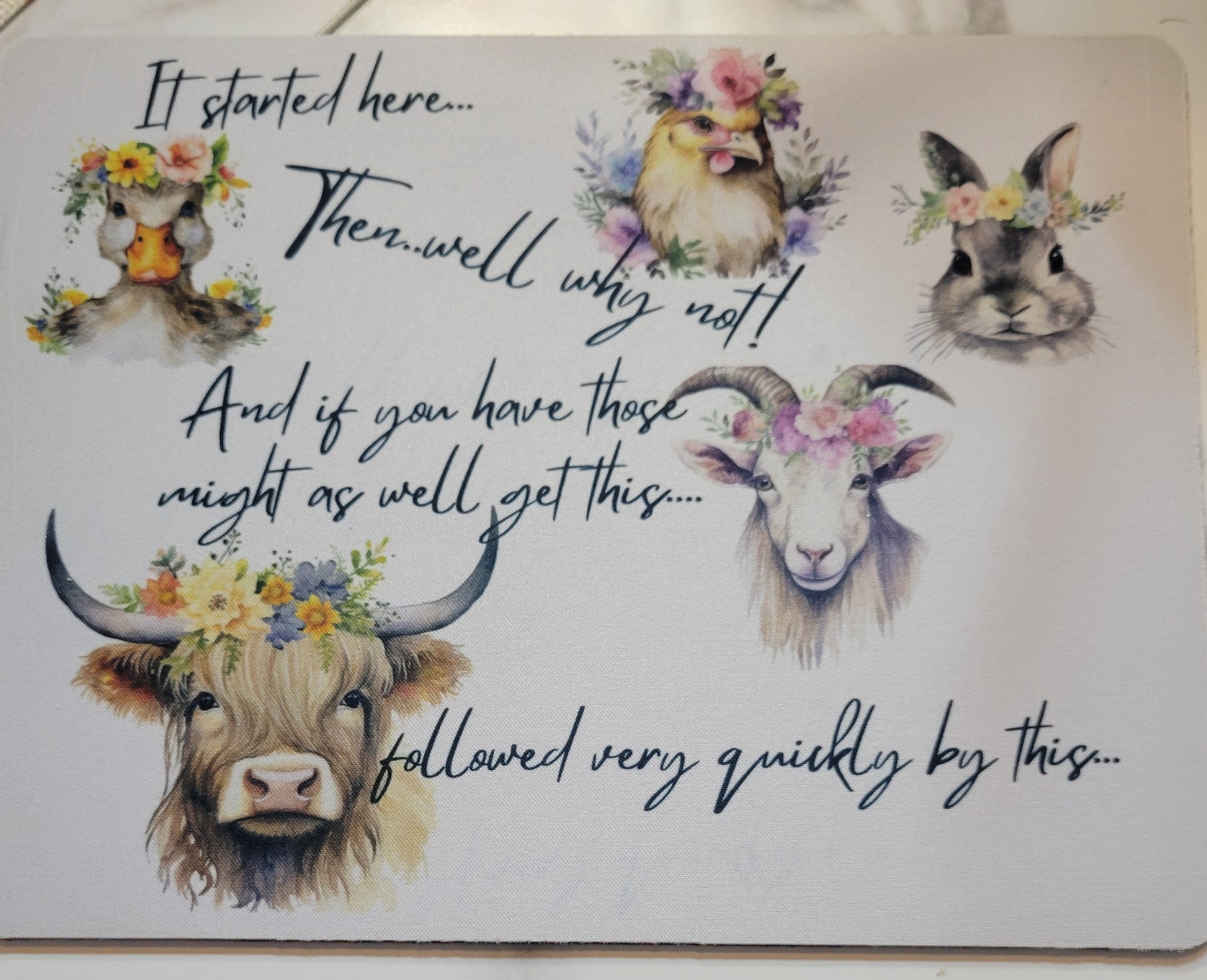 The natural progression of a homesteader describes this mouse pad best. FUNNY BUT TRUE. I use this mouse pad myself, and absolutely love how smoothly my mouse work with it.